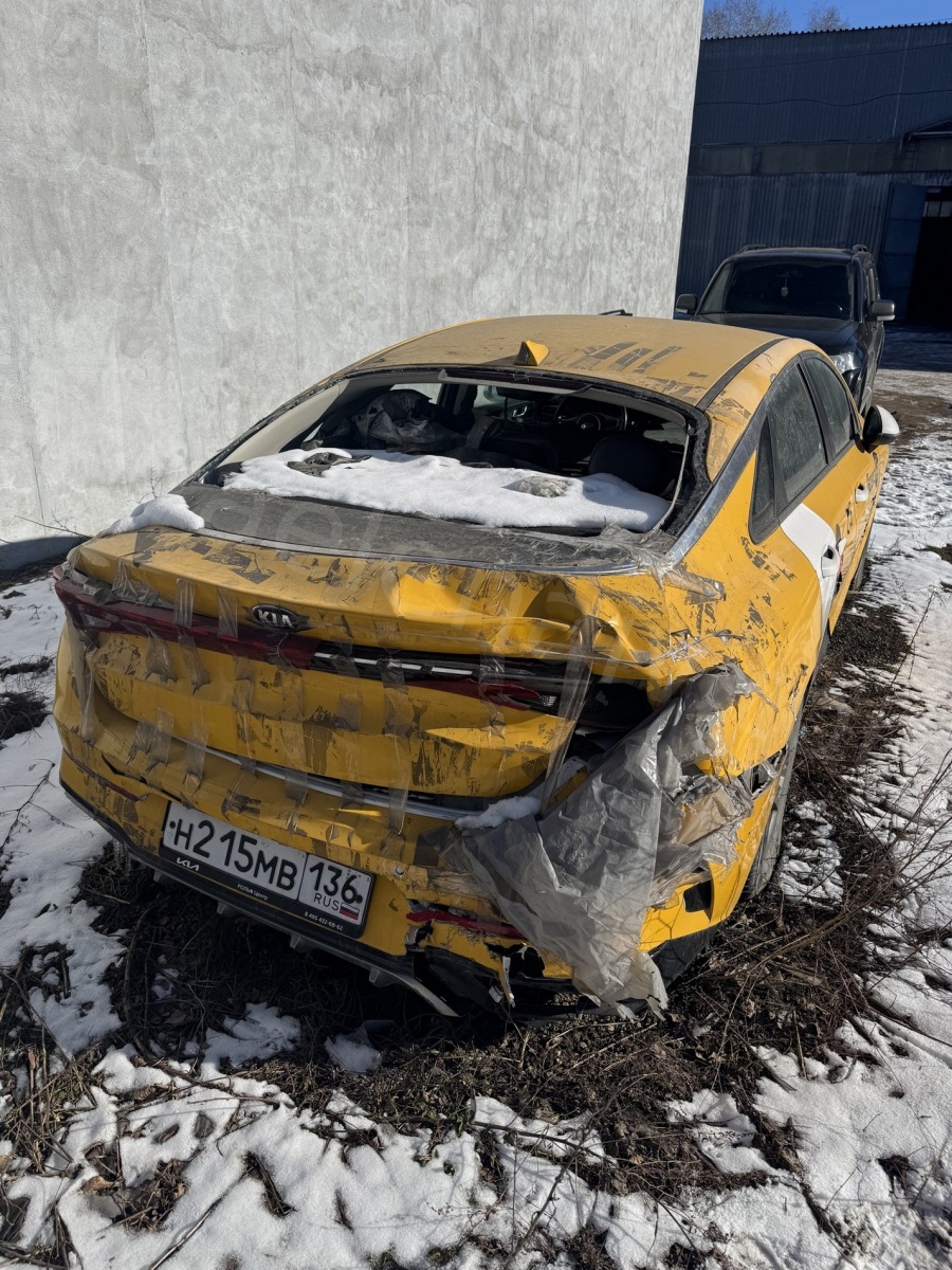 Автомобиль марки Kia модель K5 2021 г.в. регистрационный знак Н215МВ 136, цвет белый, оклеен желтой пленкой, VIN-номер XWEG2414BM0005549. (повреждения автомобиль не запускается, разбито заднее стекло, помят багажник, задний бампер, разбита катафота, фонарь, отсутствует передний бампер с оптикой, имеются скрытые повреждения. Пробег установить невозможно).