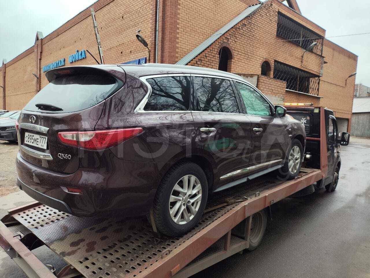 Легковой автомобиль, марка: Infiniti, модель: QX60, год изготовления: 2014, цвет: Красный темный, VIN: 5N1AL0MMXEC552910, ПТС: 78 УУ 673701, г/н: С895МЕ777, двигатель №: 684705Y, мощность двигателя, л. с. (кВт): 262 (193), рабочий объем двигателя, куб. см: 3498, разрешенная максимальная масса 2715 кг, масса без нагрузки 2082 кг. Пробег, км (по одометру): 265 000. Привод: Передний.